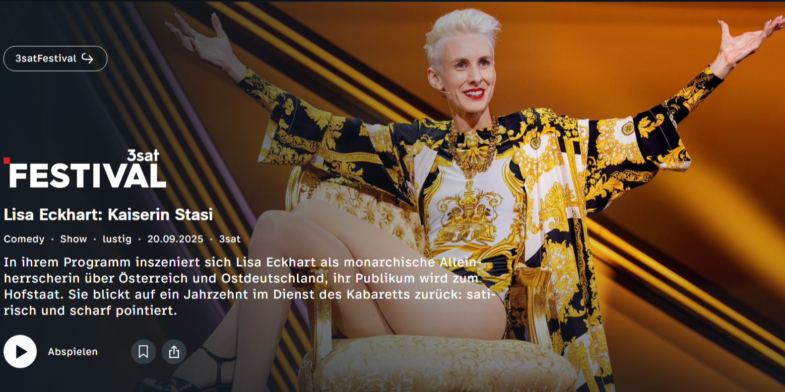 Unmittelbar davor um 20 UHR 15 ist ebendort ihr beim 3sat-Festival gezeigtes Programm „KAISERIN STASI DIE ERSTE“ zu sehen.